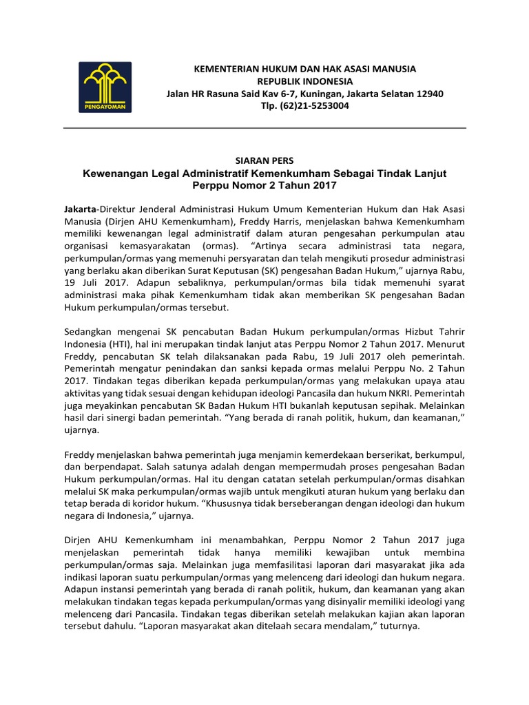 Mengingat, lingkungan eksekutif, termasuk menkumham.